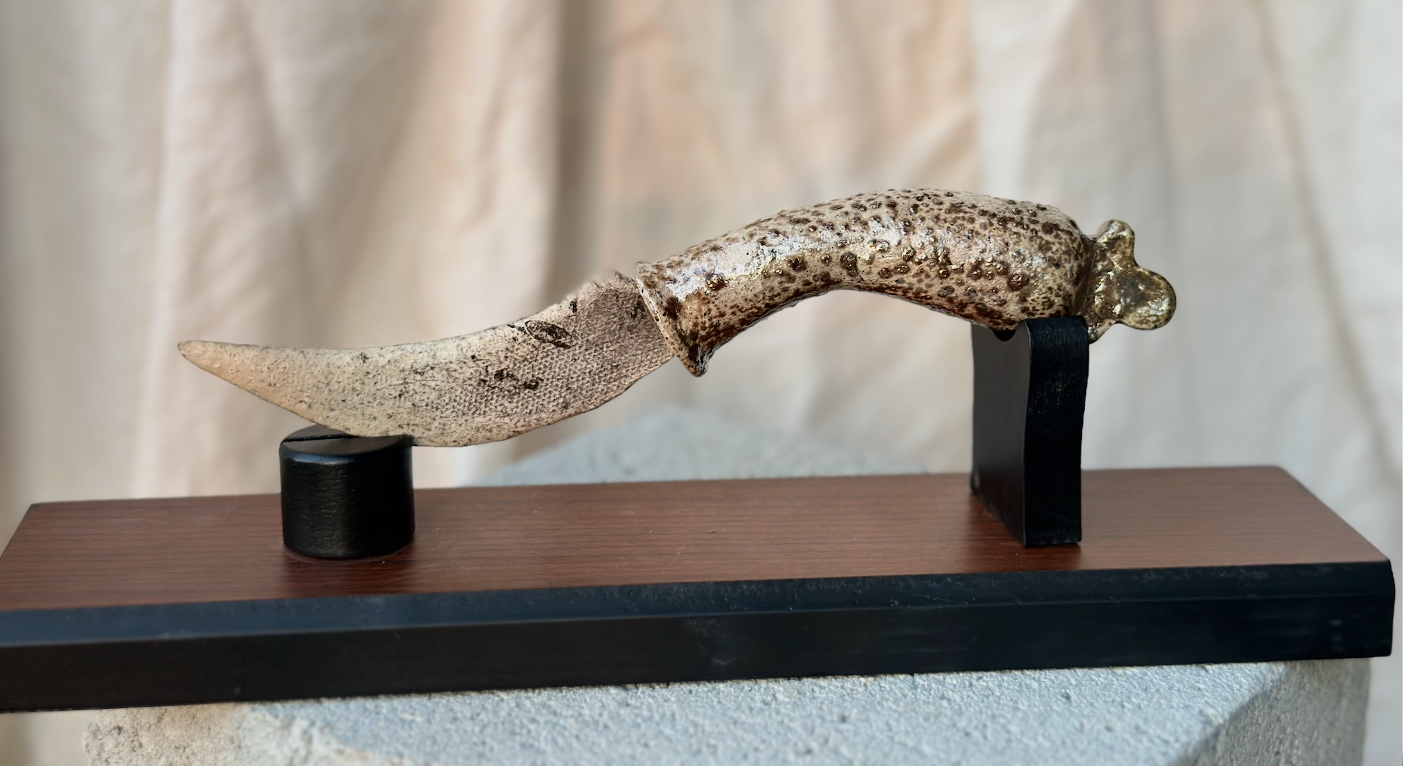 The raw, unglazed sections expose the natural clay, symbolizing the resilience and the experience of training in knife fighting and Kajukenbo. Titled "Dagger Emerged from Clay," this piece is the inaugural dagger in a series that delves into the relationship between ceramics and my personal history. Stay tuned for more details and pieces in this series.